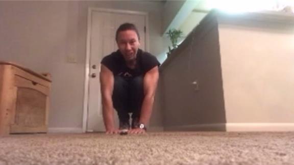 Alicia Weber performed 165 hands-flat triangle star squats in four minutes.