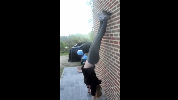 Elise D. performed a handstand for 28.36 seconds while balancing a book on her feet.