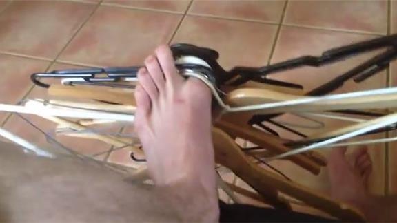 Brendan Kelbie hung 20 hangers on his big toe at once.