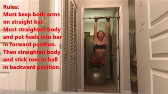 Alicia Weber completed 25 hanging Swiss ball ab rolls in three minutes.
