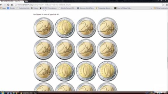 Joseph K. flipped 15 heads out of 20 virtual 2-Euro coins in Coin Flipper.
