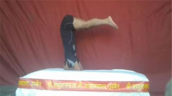 Dr. Ashish Mehta performed a headstand with his legs bent at a right angle for 45.08 seconds.