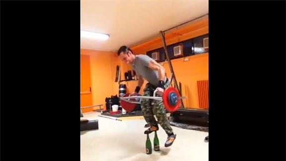 Record Setter lifted a 42-kilogram barbell while standing on two glass bottles on one foot.