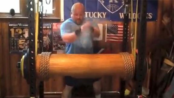 Clint P. bench pressed a 425-pound wooden log.
