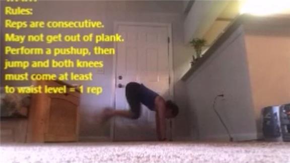 Alicia Weber performed 135 high knee jump push-ups in 12 minutes.