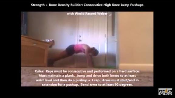 Alicia Weber performed 157 high knee jump push-ups in 13 minutes.
