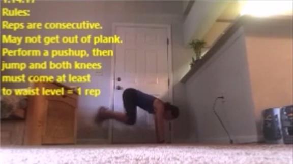 Alicia Weber performed 83 high knee jump push-ups in six minutes.