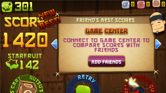 Not sure if this worth mentioning, but I have a score of over 600 in arcade mode while playing the free version on my phone. I don't think I get the special fruit that you guys might get and I'm not sure if a larger screen gives you a major advantage.