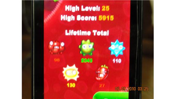 Anival Palacios reached Level 25 and scored 5915 points in a single game on Goo Splat. The record was set on hisZune.