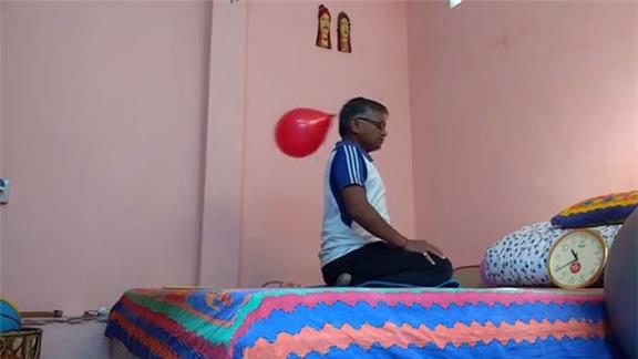 Suresh Gaur hit a punch balloon 211 times using the back of his head in one minute while kneeling.