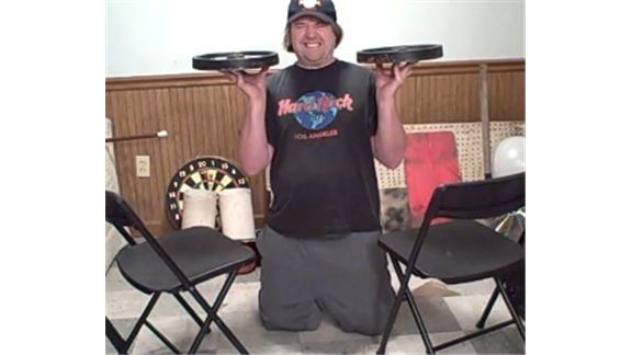 Brian Pankey held a 25 pound weight plate on his fingertips in each hand while kneeling for one minute and 6.30 seconds.