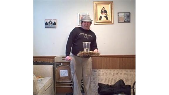 Brian Pankey balanced a glass of water on the end of a broom held out straight for two minutes, 35.13 seconds.