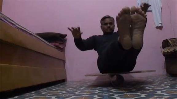 Suresh Gaur held boat pose on a balancing board for 36.84 seconds.