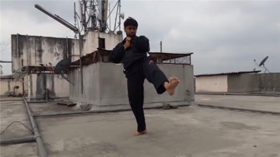 Sachin S. held a martial arts front kick position for two minutes, 5.74 seconds.