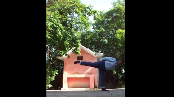 Suresh G. held a martial arts side kick position for one minute, 59.44 seconds.