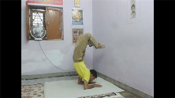 Krishan Kumar held scorpion yoga pose for two minutes, 57.00 seconds.