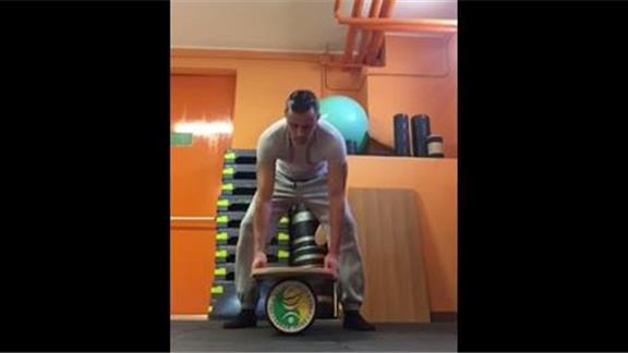 Record Setter held a Vajra Veerasana Hero Pose on a balance board for two minutes, 10.05 seconds while clamping both his hands in front of his right leg.