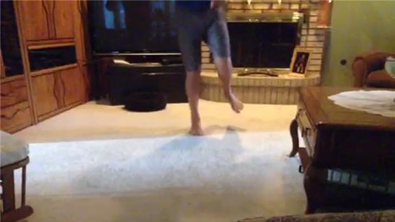 Mike W. hopped on one foot 105 times in 30 seconds.