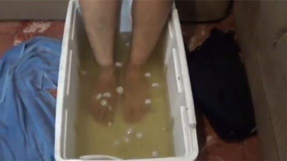 Ernesto R. immersed his feet in a container of cold beer for 23.66 seconds.