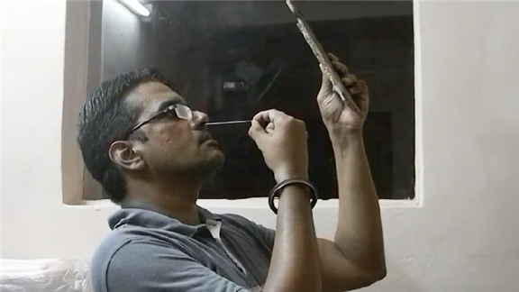 Dinesh Shivnath Upadhyaya inserted a four-inch nail into his nose 17 times in 30 seconds.