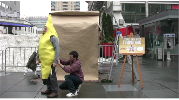 Sam Stilson of The Record Collection spent 4 hours, 59 minutes, and 21 seconds inside of a paper bag. He set the world record to raise money and awareness during the Lunch Money Day charity event.