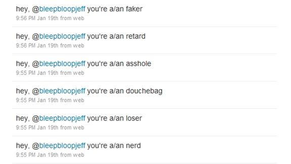 - allowed to cut/paste "Hey, @twittername you're a/an..." into each tweet to speed up insults