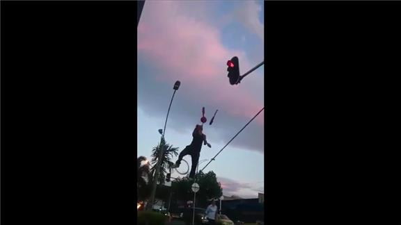 Longest Time Juggling Four Clubs While Balancing A Ball On Top Of A Stick Held In Mouth, Spinning A Hoop On One Leg, And Balancing On A Slackline
