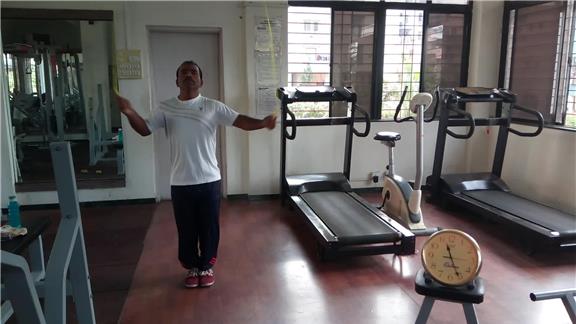 Pramod B. completed 100 jumping rope jumps in 30 seconds without bending his knees.