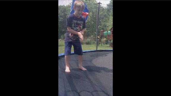 Record setter jumped on a trampoline 27 times in 10 seconds.