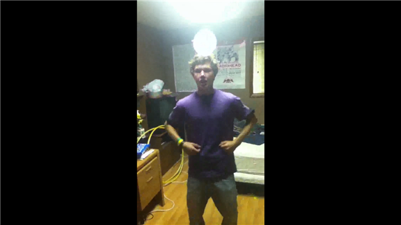 Spencer Thoma kept a static balloon attached to his head for 30.16 seconds while dancing like a chicken.