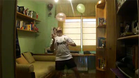 Angel Barcia kept two balloons aloft using only his head for a total of 45 bounces.
