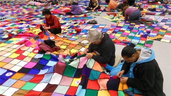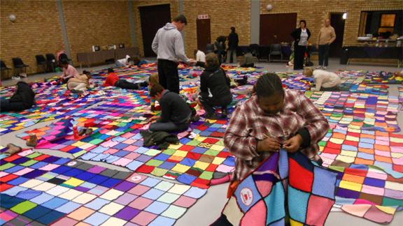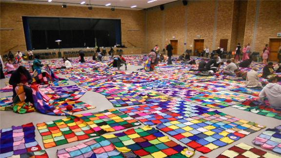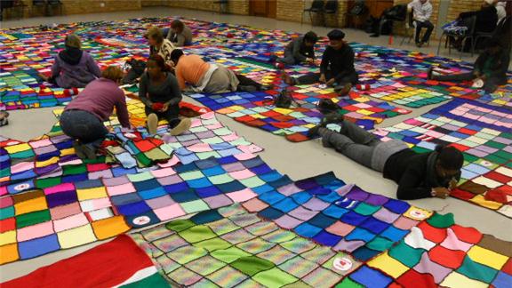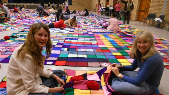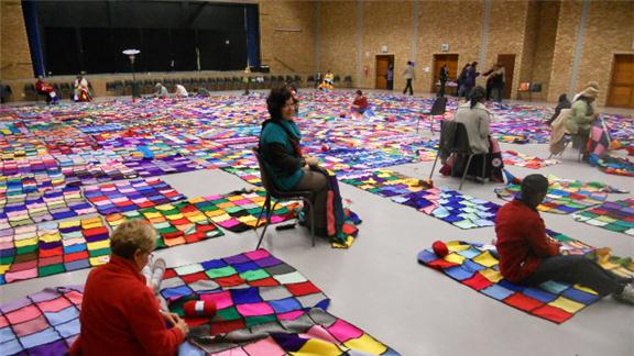 Venessa Booysen and fellow members from Hatfield Christian Church made a knitted blanket measuring 557 square meters. It took the group 15 weeks to finish the entire blanket.