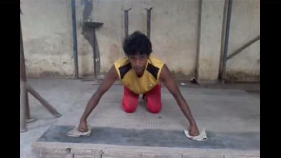 Shaikh R. completed 110 knuckle push-ups in one minute.