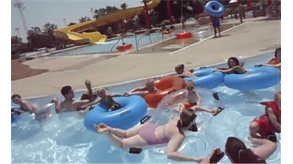 A total of 28 campers at iD Tech Camp Purdue University joined togther while in inner tubes and rode along a lazy riverwhile connected.