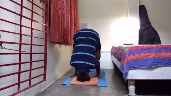 Suresh Gaur held a leaning crow pose for 20 minutes, 35.00 seconds while touching his head on the ground.