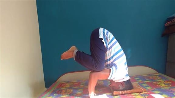 Longest Leaning Crow Pose Held While Touching Head On The Ground