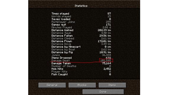 Brett M. dealt 98,314 damage points in Minecraft.