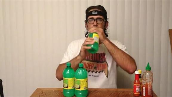 Naader R. consumed four bottles of lime juice, 128 fluid ounces in total, consecutively.