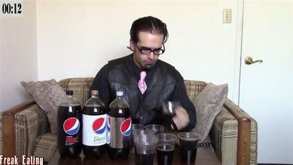 Naader Reda consumed eight liters of Pepsi. He set the record for a YouTube video and to help promote the return of Crystal Pepsi.