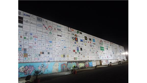 The Discovery Exhibition Organizers built a billboard with 1233 company logos on it. The billboard measures 10 meters in height and 100 meters in length.