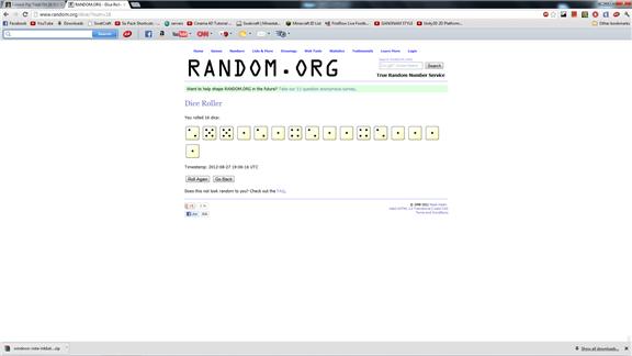 SwatCraft has 34 pips after rolling 16 dice on Dice Roller.