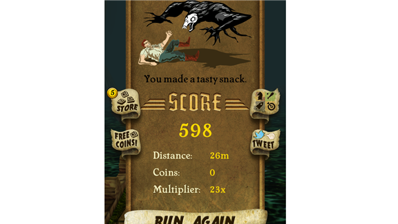 Zach Lorenz earned 598 points in a single game of Temple Run.
