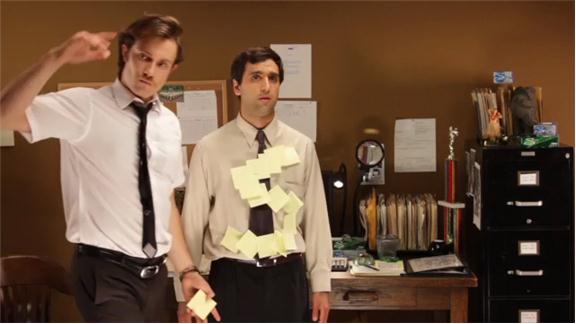 Fastest Time To Make An "S" Using Sticky Notes On Someone Else's Body