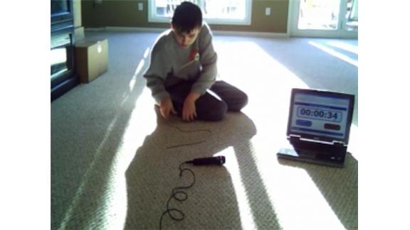 I bet he cheated by having marks on the desk for a length of 36 balls. I don't think he can count out the first strand that fast by just running his fingers along it. I've tried that and that alone blows at least 8-9 seconds