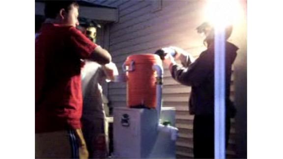 They poured three liters of soda and five pounds of ice in to a homemade machine made from a five-gallon cooler and a 1/2 horsepower garbage disposal to achieve the feat.