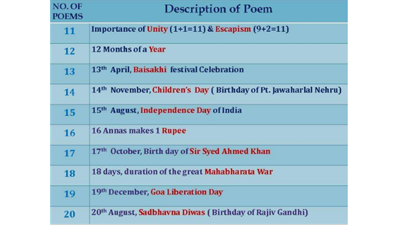 Dinesh Shivnath Upadhyaya created a collection of 31 poems entitled "AnkGeet". The poems are created through SMS, with numbers replacing certain letters, and meant to be read with the use of a mirror.