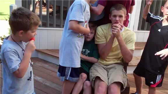 Trish Martinez and nine of his friends sat on an office chair at once.