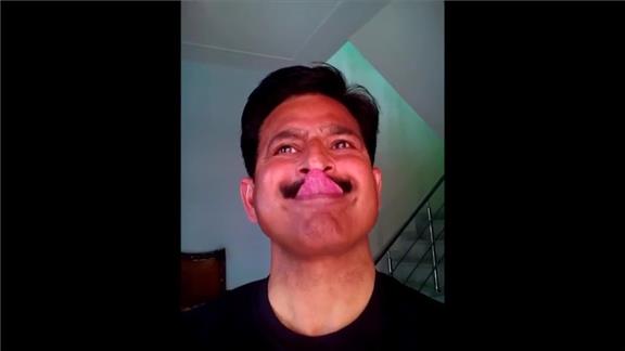 Vinod K. touched his tongue to his nose 135 times in one minute.