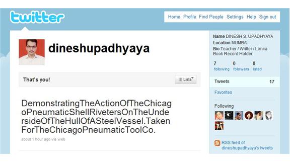 Dinesh Shivnath Upadhyaya fit the movie title "[Demonstrating The Action Of The Chicago Pneumatic Shell Riveters On The Underside Of The Hull Of A Steel Vessel. Taken For The Chicago Pneumatic Tool Co.][]rdquo; in a tweet. The movie title is 128-characters in length.