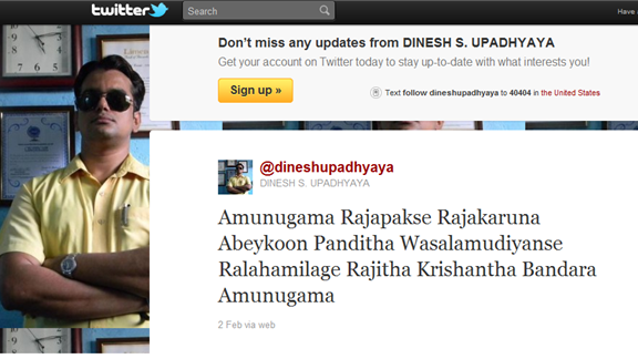 Dinesh Shivnath Upadhyaya posted a tweet of the name of a sportsman 104 characters long.